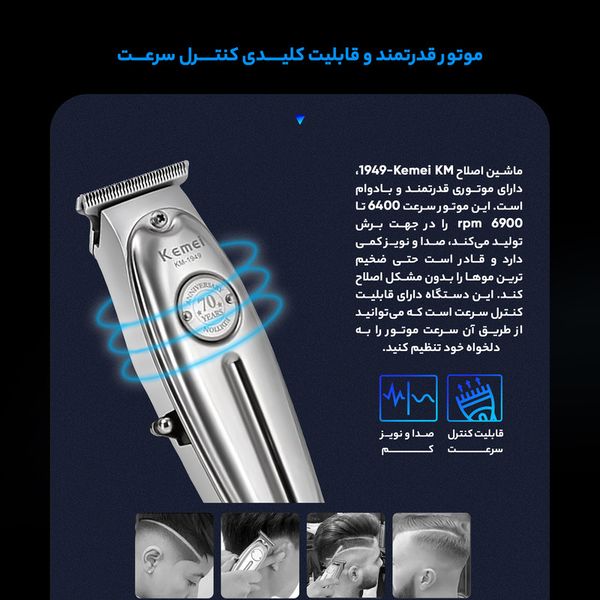 ماشین اصلاح موی صورت کیمی km 1949 ماشین اصلاح موی Kemei KM 1949 یکی از بهترین و پرفروشترین ریشتراشهای مردانه در بازار است. این ماشین اصلاح مو با طراحی منحصر به فرد و کارایی بینظیر خود، توانسته است جایگاه ویژهای در میان محصولات مشابه داشته باشد. با استفاده از تکنولوژی پیشرفته و تیغههای تیز و دقیق، این ریشتراش به راحتی و به صورت حرفهای موهای زائد صورت را اصلاح کرده و به شما ظاهری زیبا و مرتب بخشیده است. در ضمن، ماشین اصلاح موی Kemei KM 1949 دارای قیمت مناسبی هم است که با کیفیت بالا و عملکرد قابل اعتماد خود، ارزش بیشتری به خریداران خود ارائه میدهد. با استفاده از این ریشتراش، مردان میتوانند به سادگی و با اطمینان بالا، به بهترین شکل ممکن از ظاهر خود مراقبت کنند و به زیبایی و زیرکی خود بیفزایند. تکنولوژی تیتانیوم هم در ریشترشهای برقی بسیار محبوب است. این تکنولوژی به دلیل مقاومت بالا در برابر خوردگی و سایش، بسیار پرکاربرد است. مزایای این تکنولوژی شامل عمر طولانی، سرعت بالا و اصلاح دقیق است. تکنولوژی کربن فایبر هم در ریشترشهای برقی استفاده میشود. این تکنولوژی به دلیل سبکی و مقاومت بالا در برابر خوردگی مورد توجه قرار گرفته است. از مزایای این تکنولوژی میتوان به اصلاح سریع، کارایی بالا و دوام بالا اشاره کرد. مهمترین ویژگیهای ماشین اصلاح کابردی و استاندارد این ماشین اصلاح با طراحی خاص و جذاب خود، به کاربر امکان میدهد تا با راحتی بیشتری از آن استفاده کند و از دقت بیشتری در حالتدهی موهای خود برخوردار شود. طراحی زیبا این دستگاه، نشاندهنده دقت و توجه سازندگان آن به جزئیات است که باعث افزایش کارایی و کاربردی بودن آن میشود. علاوه بر این، ماشین اصلاح مذکور دارای تنظیمهای مختلفی برای طول مو است که به کاربر امکان میدهد تا طول موهای خود را با دقت و صحیحترین شکل ممکن تنظیم کند. این امکانات تنظیمی، به کاربر انعطاف بیشتری در انتخاب طول مو و در نتیجه داشتن حالت موی دلخواه خود را میدهد.